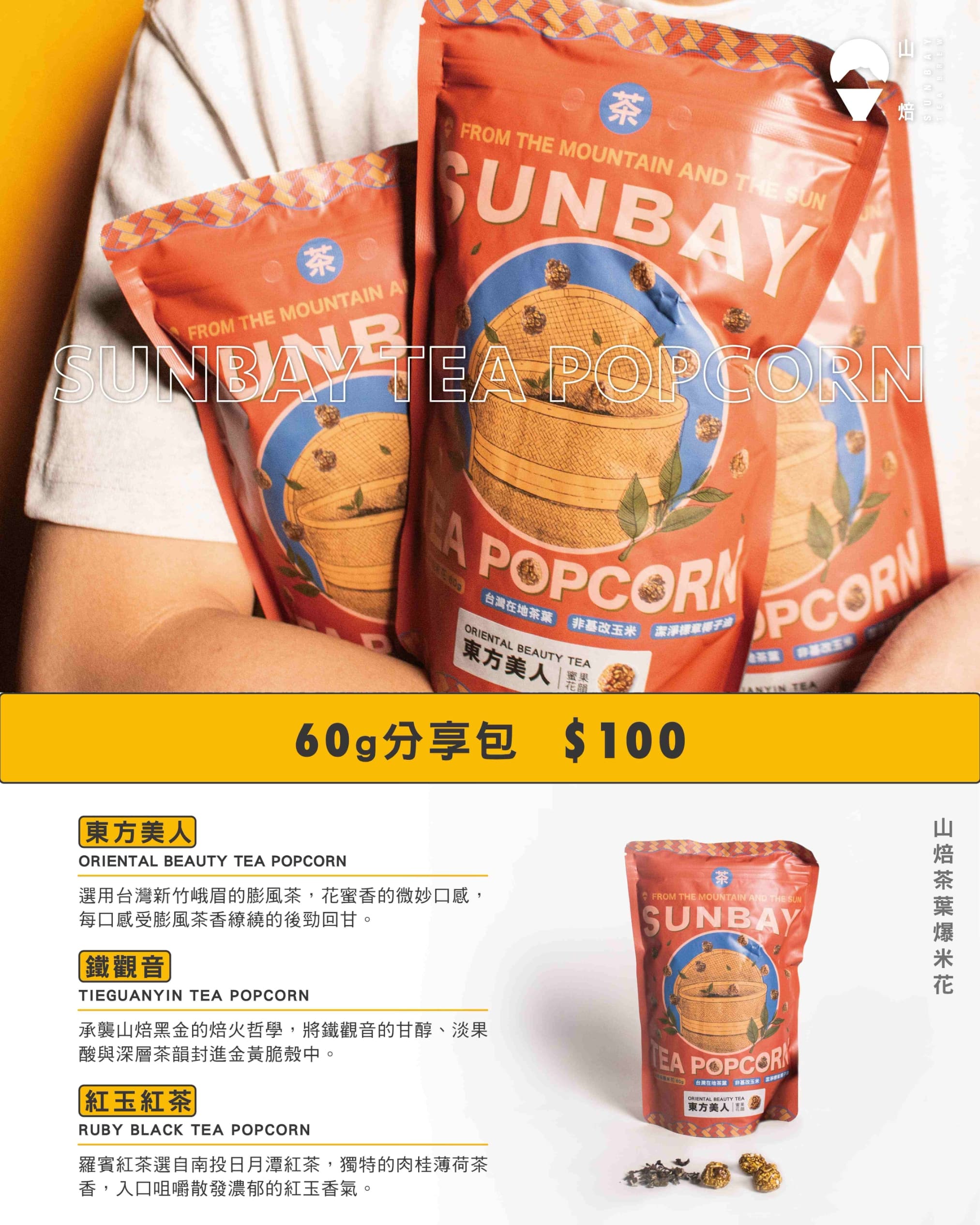 鐵觀音爆米花,承襲山焙黑金的焙火哲學,將鐵觀音的甘醇、淡果酸與深層茶韻,封進金黃脆殼中。
